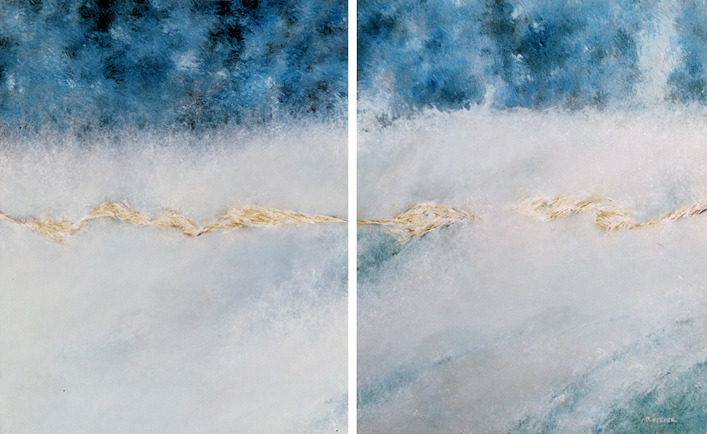 Mon travail de peintre a débuté par une période abstraite dont font partie ces toiles. Nées du hasard d’une rencontre ou l’émotion prend le pas sur la réflexion, leur réalisation dépend du chemin aléatoire que la peinture dessine sur la toile. L’harmonie entre couleurs, formes et valeurs se construit lentement jusqu’à atteindre un fragile équilibre à l’image de ceux, naturels, en perpétuel mouvement, constamment rompus et reconstruits. La nature peut alors reprendre ses droits et révéler celle, discrète et ténue : la nature même des choses.