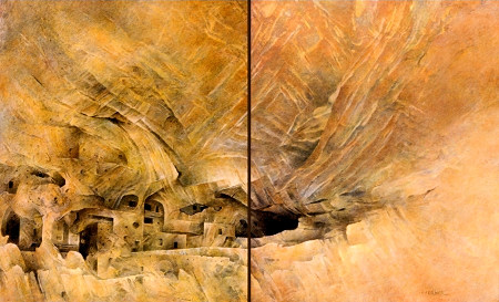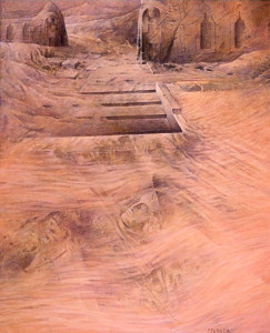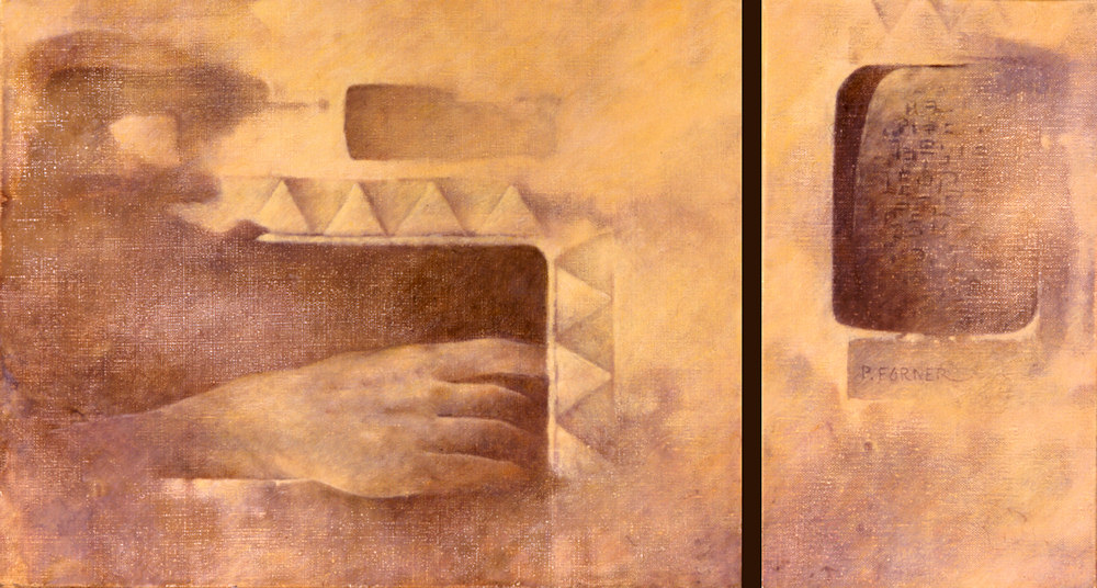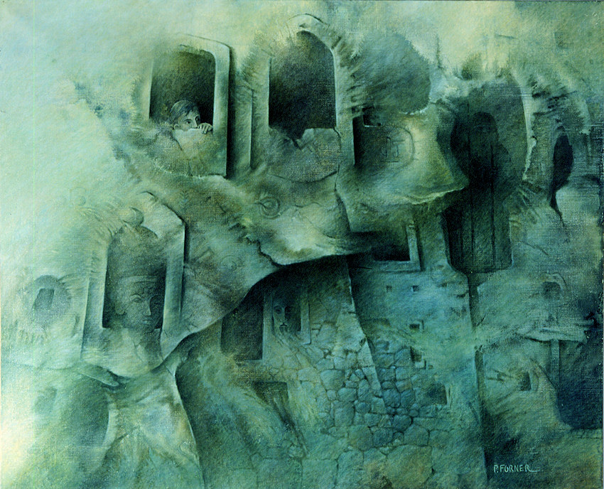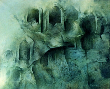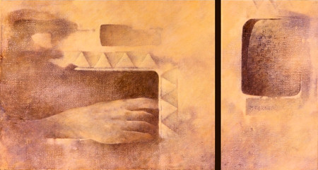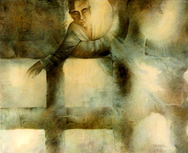 Ces toiles font partie d’une série qui naquit d’un désir de retour aux sources, ainsi que d’une aspiration à retrouver un trait, un dessin plus figuratif. Une envie, une ambiance, des émotions invitent le spectateur à cheminer dans un rêve subtil et mystérieux. Les différents signes, les calligraphies et les personnages présents sur ces toiles esquissent l’itinéraire secret de l’image qui passe de l’objet au symbole.
