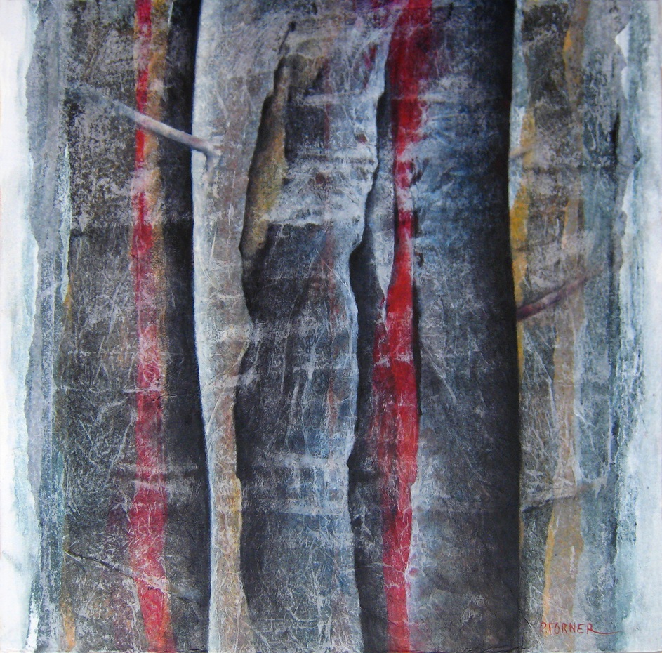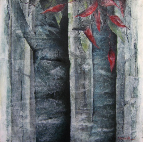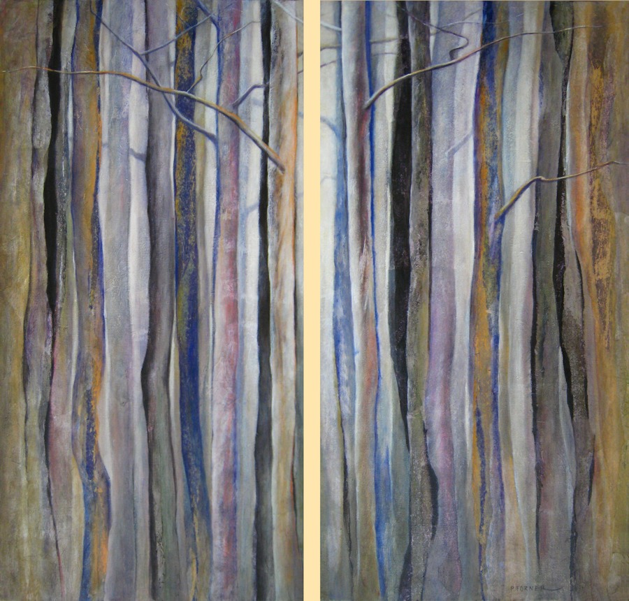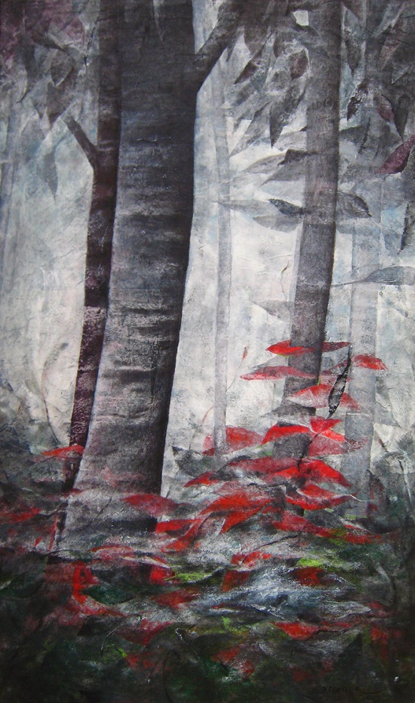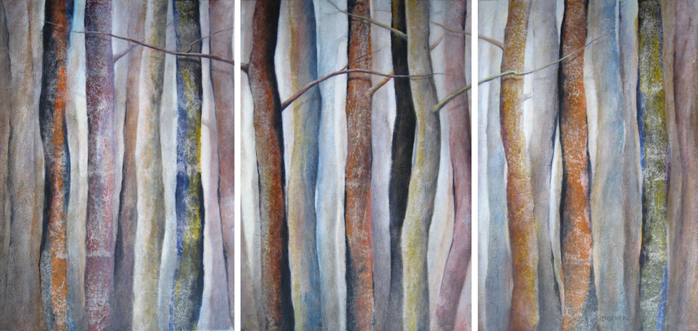 Dans les années 90, mon travail de peintre à débuté par une série abstraite dédiée à la nature. Actuellement c’est encore elle qui m’inspire à travers la matière et la couleur des écorces, le graphisme des troncs, le rythme des futaies.