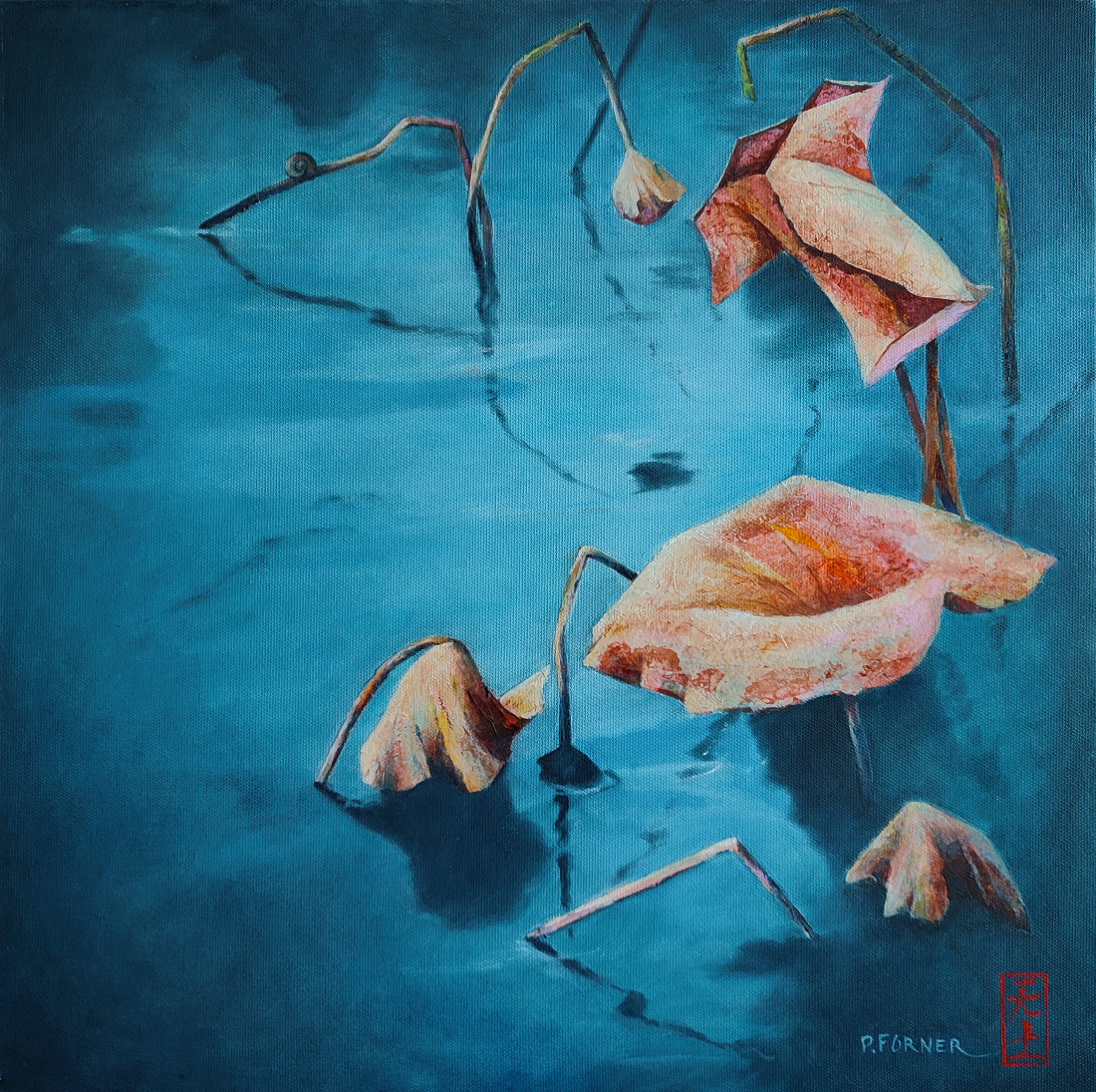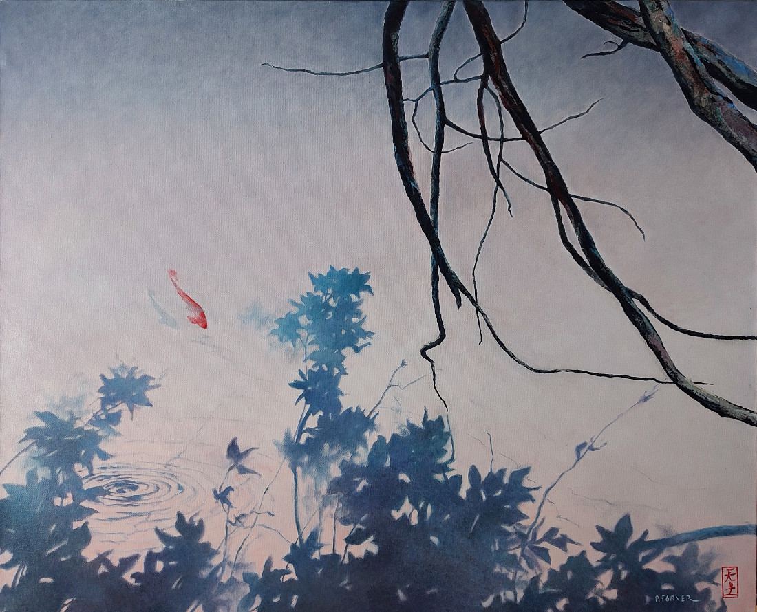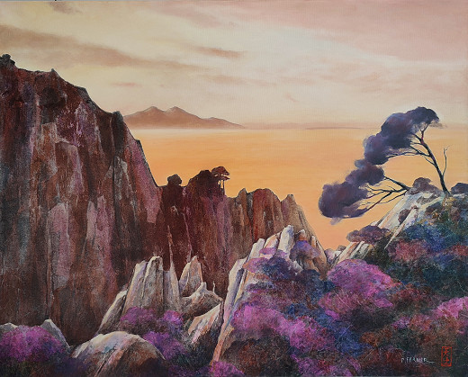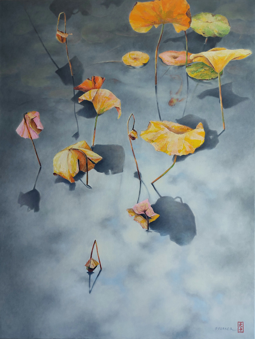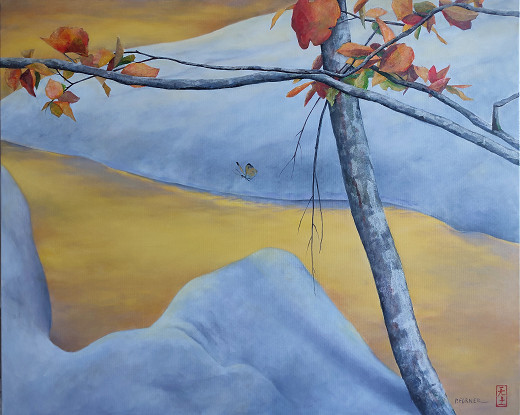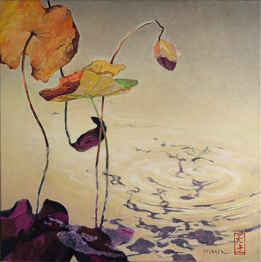 D'un besoin de calme, d'un désir de quiétude et de sérénité, cette série a vu le jour. D'une inspiration puisée aux racines orientales, loin des turbulences, les paysages évoquent un espace poétique ou la terre, l'eau et le ciel se confondent.